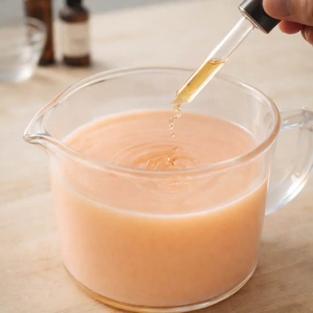 3. Adicione de 6% a 10% de essência, o equivalente a aproximadamente 55g a 90g, misturando bem para total incorporação.