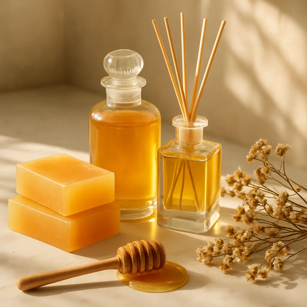 Além disso, a essência Mel funciona excepcionalmente bem como aroma principal para produtos temáticos, especialmente linhas “Mel & Aveia”, muito procuradas no mercado artesanal pela suavidade e apelo emocional. Inclusive, sua combinação com Aveia aumenta a explosão olfativa, especialmente em difusores de varetas.
