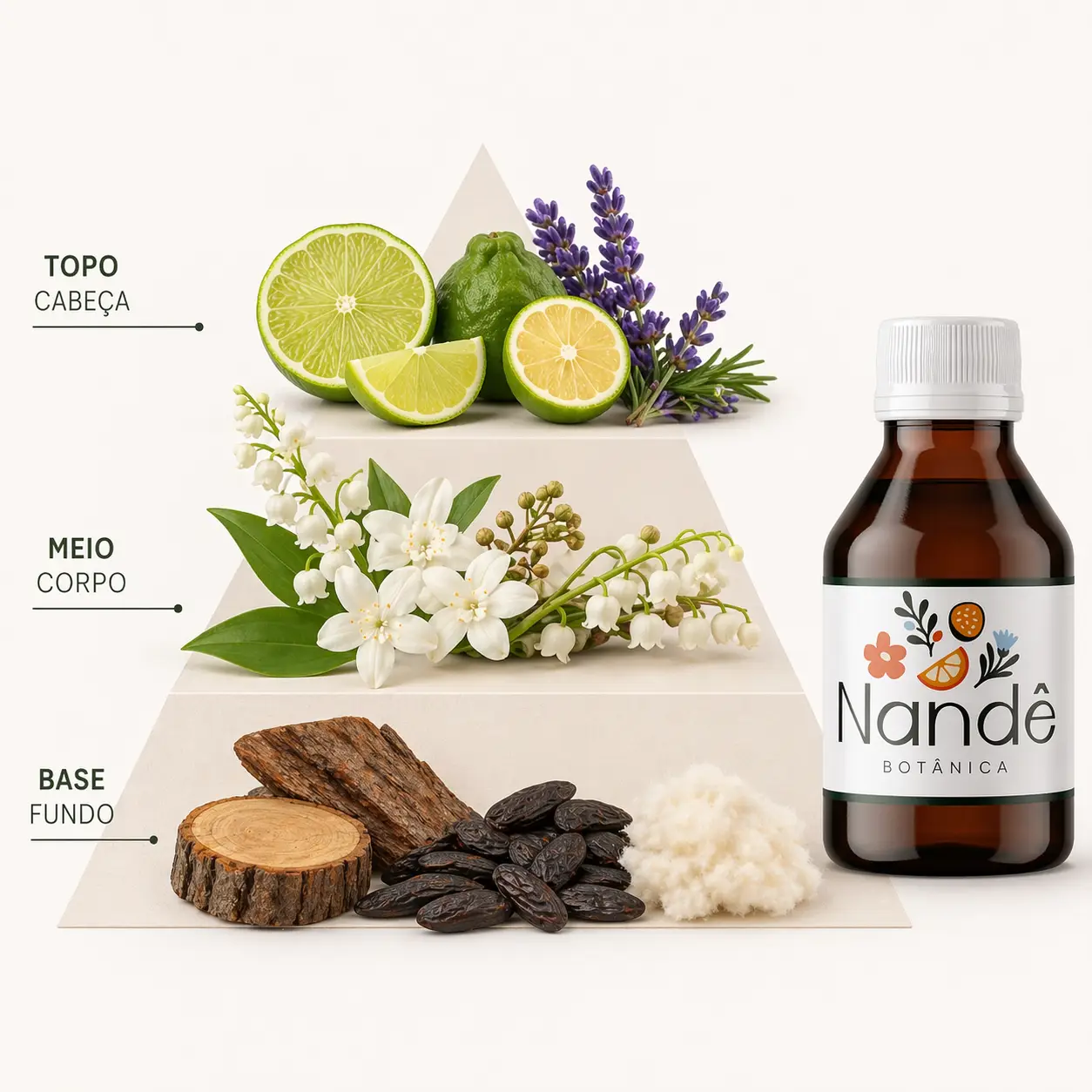 Sua construção olfativa é cuidadosamente equilibrada: inicia com notas cítricas e aromáticas que trazem frescor imediato, evolui para um floral refinado e finaliza com um fundo suave e aconchegante. O resultado é um aroma limpo, moderno e extremamente versátil, ideal para produtos que valorizam bem-estar e sofisticação.